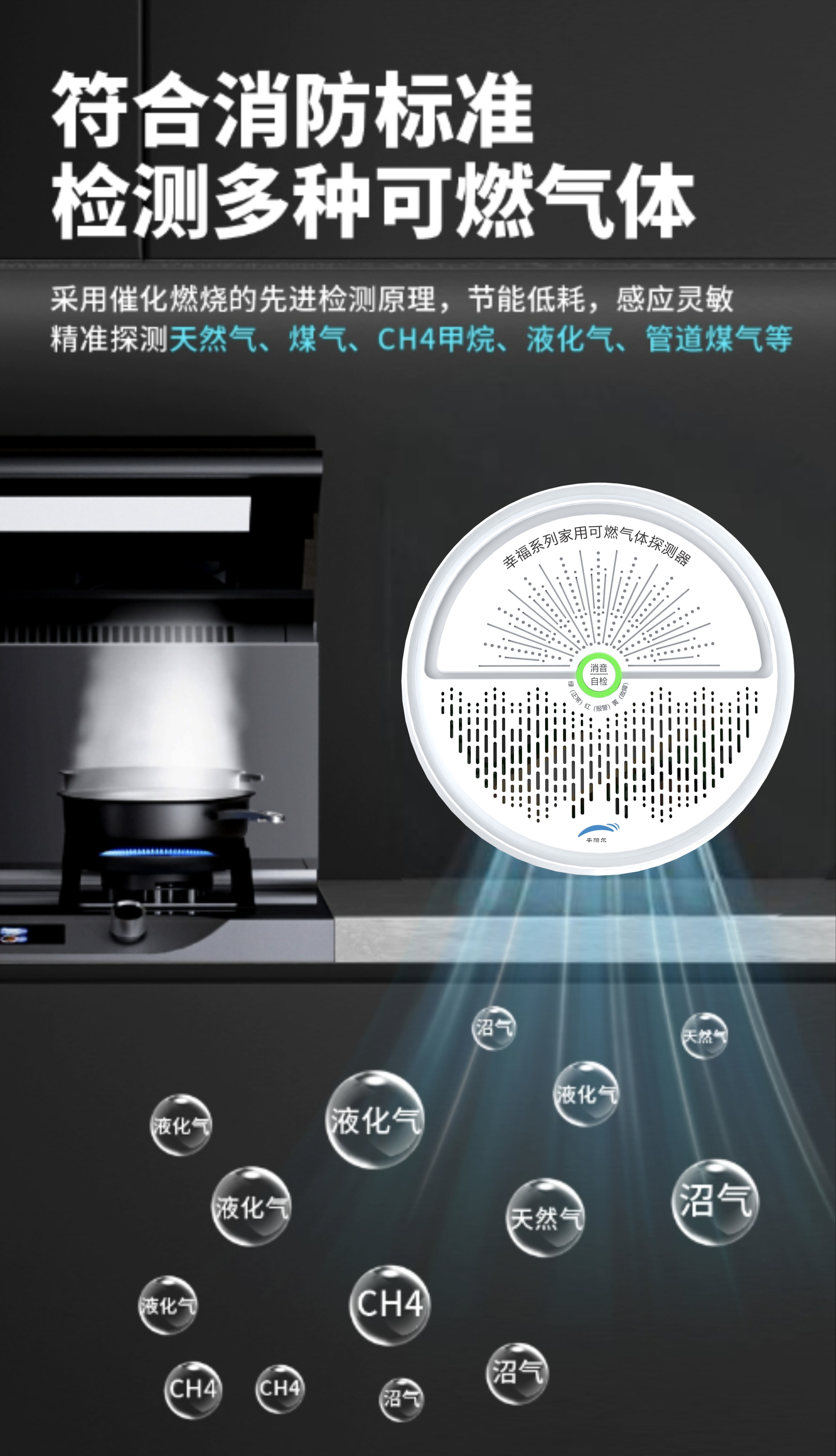 ☆ 選用行業領先高性能低功耗傳感器,兼顧性能與功耗。最大可同時支持2種檢測類別,杜絕家庭氣體安全隱患盲區;